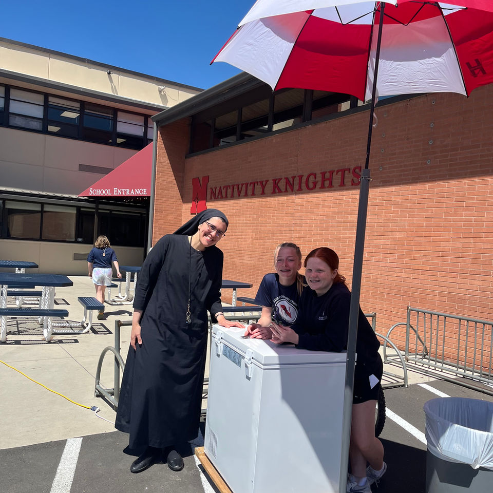 Nativity parish and school are under the pastoral care of the Priestly Fraternity of St. Charles Borromeo. We are uniquely blessed to have both Priests and Sisters actively involved in our school community. For example, Fr. Accursio Ciaccio teaches middle school theology and leads retreats, while our pastor, Fr. Emanuele Fadini, regularly visits classrooms and celebrates Mass with students, and Sister Marilú Arbesú is our vice principal.